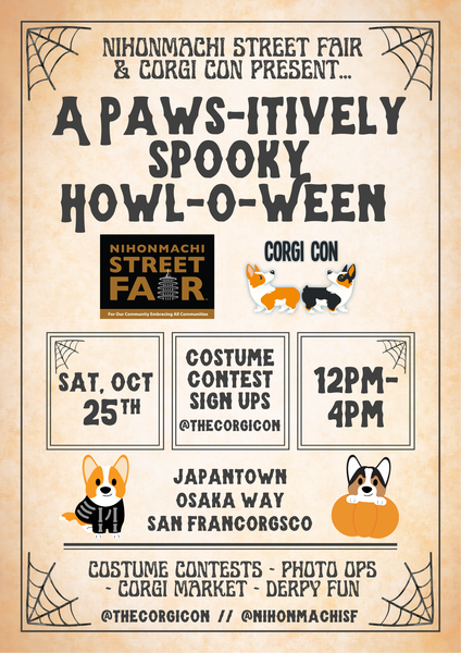 Nihonmachi Street Fair and Corgi Con are proud to announce a special partnership to host a Halloweenie Corgi Costume Contest, In Japantown, San Francisco blending the playful spirit of Corgi Con with the rich cultural traditions of Japantown.